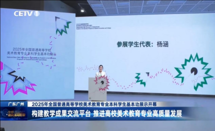 赛事期间,美术学院师生表现优异、屡传佳讯:学生杨涵因综合素养突出,受教育部邀请作为学生代表在开幕式发言,并接受了中国教育电视台的现场采访;在教学展示微课环节,全国共遴选出10项优秀案例进行现场展示,美术学院朱雨瑄、杨涵、于宁怡三位同学作品悉数入选;在专业技能展示环节,我院美术教师沈梦杰老师与于宁怡同学的作品获评优秀案例,并入选现场优秀作品
