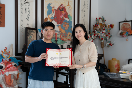 在走访过程中,张广华院长代表学院向豫见小站非遗传承基地授予了“郑州师范学院美术学院教学实践基地”牌匾,并正式聘请王站先生担任学院“非遗特聘专家”,为其颁发聘书。王站先生长期致力于商丘“老虎鱼灯”这一独具地域特色非遗项目的挖掘、保护与创新。 该花灯融合虎之威猛与鱼之灵动,工艺繁复,具有极高的民俗审美价值。随着非遗项目的市场化推广,王站先生目前急需专业的文创设计人才参与产品研发与视觉形象提升。
