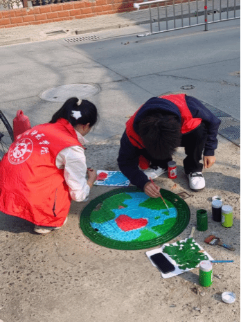 春之伊始,万木生发。为迎接第46个植树节的到来,充分发挥不怕苦不怕累的精神,呼吁广大团员青年积极投身植树护绿的行动。3月12日,美术学院团总支带领“艺心一益 绘梦同行”团员青年志愿服务队前往惠济区龙源街街道其中一处老旧社区开展“团员青年进社区——社区改造换新颜,手绘墙画正廉洁”主题绘画志愿服务活动。