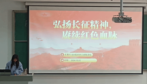 为深入学习贯彻习近平新时代中国特色社会主义思想和党的二十届三中全会精神,大力弘扬长征精神,进一步坚定理想信念,1022日中午,美术学院学生会学习发展部在西校区崇仁楼二楼阶梯教室组织2024级全体学生,开展了“弘扬长征精神,赓续红色血脉”主题政治学习会议。本次会议由B24美术学班团支书陈泽钰主持。