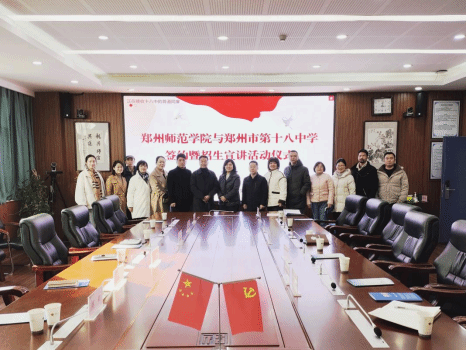 2025年1月9日下午,郑州师范学院美术学院与郑州市第十八中学签署了党组织结对共建协议、实践教学基地协议,并举行了招生宣讲活动仪式。郑州市第十八中学党委书记段亚萍、校长来松涛、副校长倪海军、工会主席张恺、教务处副主任曾昭霞及美术学科教师,郑州师范学院美术学院院长张广华、副院长周弘宇、教工党支部书记赵汇鑫、教务办主任魏银川、实验与实践教学中心副主任田丽、实训与就业中心主任刘鹤、博士沈梦杰一行共同出席此次签约仪式,仪式由第十八中学党委书记段亚萍主持。