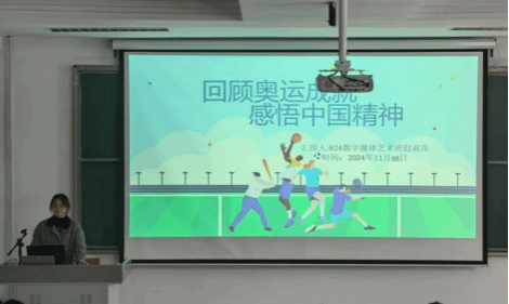 为深入学习贯彻习近平新时代中国特色社会主义思想,弘扬奥林匹克精神,激发广大同学的爱国热情,铸就青春新篇章,11月5日中午,美术学院学生会学习发展部在西校区崇仁楼二楼阶梯教室组织2024级全体学生,开展了“回顾奥运成就,感悟中国精神”主题政治学习会议。本次会议由B24数字媒体艺术班赵淑萍主持。