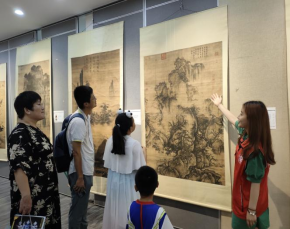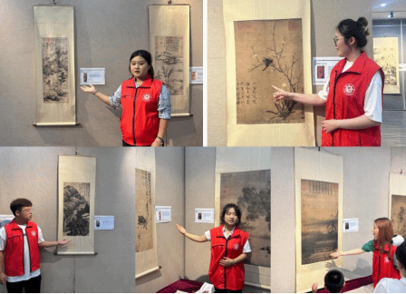 7月19日,宣讲团成员专门为郑州市惠济区龙源街社区居民分批次开展了生动细致的志愿宣讲服务活动。学院党总支书记王智红老师、实验与实训教学中心主任丁伟老师、造型艺术部主任赵汇鑫老师亲临活动现场,与同学们一同参加活动。活动期间,宣讲团成员带领参观者在美术馆里驻足欣赏,努力讲好中国传统绘画,品读中国艺术,领悟中国文化,让更多对绘画有兴趣的观众能真正地“坐听弦诵声,细嗅杏坛香”。从“宋韵无尽”到“元气淋漓”,从“明气煊耀”到“清流回荡”,宣讲团成员们以“艺”传声,利用美术馆的丰富的艺术资源使广大参观者深入了解中国绘画艺术的演变和特色,将美育精神“润物无声”地浸润参观者的内心,实现了以美育人、以文化人。社区居民们纷纷表示,能够在家门口就能欣赏到如此震撼的艺术佳作,感到非常高兴和荣幸,通过志愿者对这些艺术作品的悉心讲解,更是让他们感受到了中华优秀传统文化的魅力和力量。活动结束后,宣讲团成员时小斐说:“能够积极参与到此次宣讲活动,不但让观者对中国传统绘画有了更深入的了解和认识,也激起了自身对中华传统艺术文化的探索欲,非常期待能够参与到更多的志愿宣讲活动中来。”